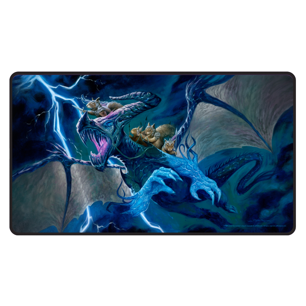 Flight of the Nutcrackers playmat by artist Jeff Miracola. Stitched-edge, high-quality playmat featuring squirrel warriors riding a dragon.